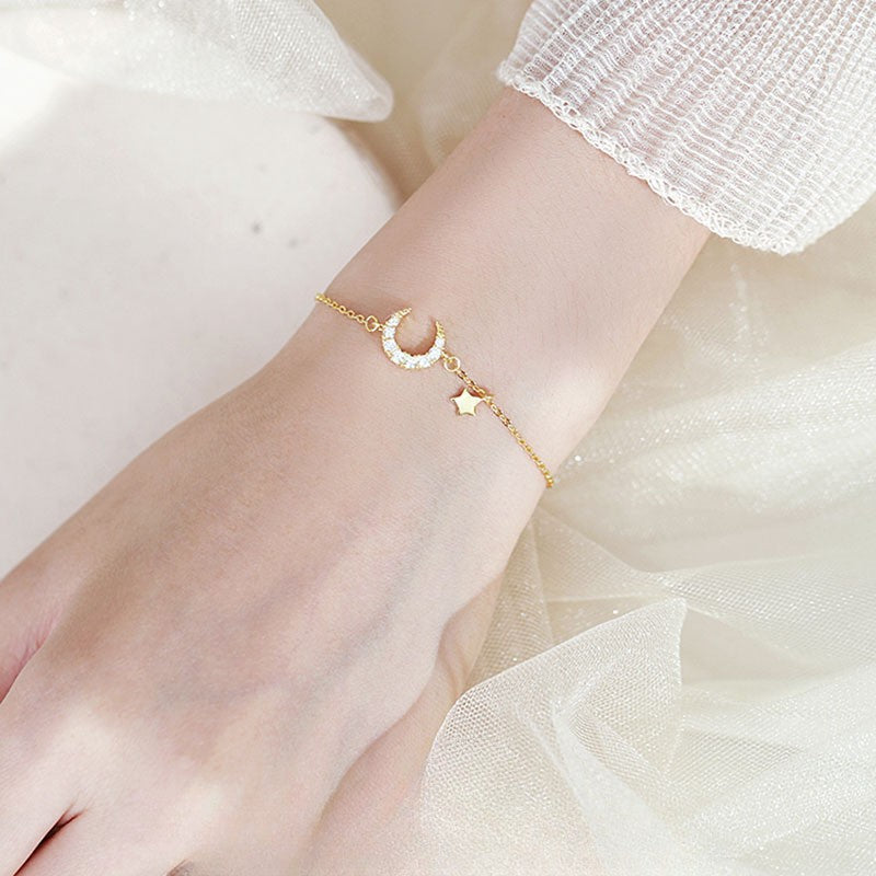 Ce bracelet symbolise l’harmonie entre rêve et élégance. Sa chaîne fine en argent 925 plaqué or épouse le poignet tout en douceur, tandis que les strass scintillants reflètent la lumière à chaque mouvement. Un bijou à la fois discret et captivant, parfait à offrir ou à s’offrir.